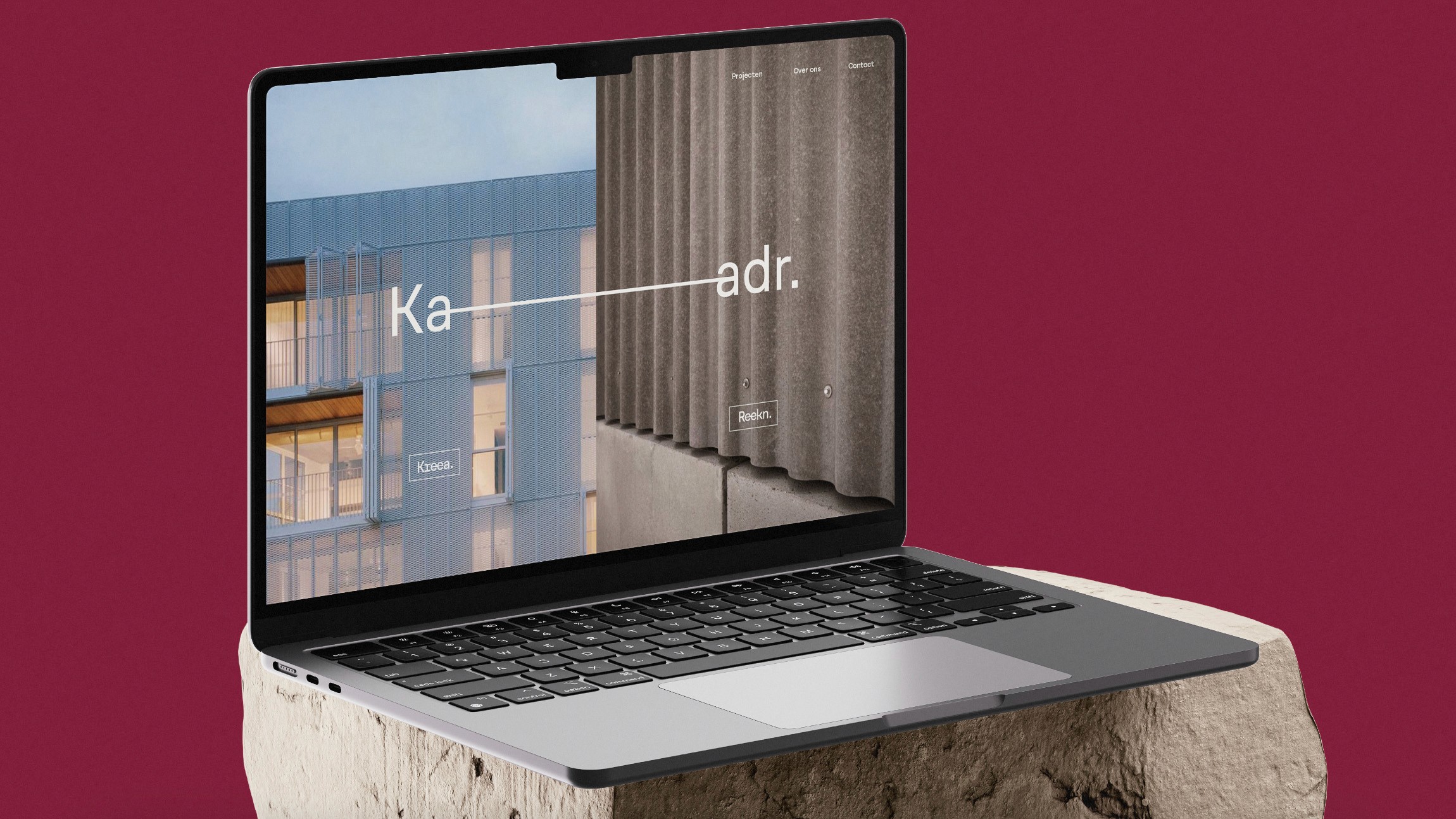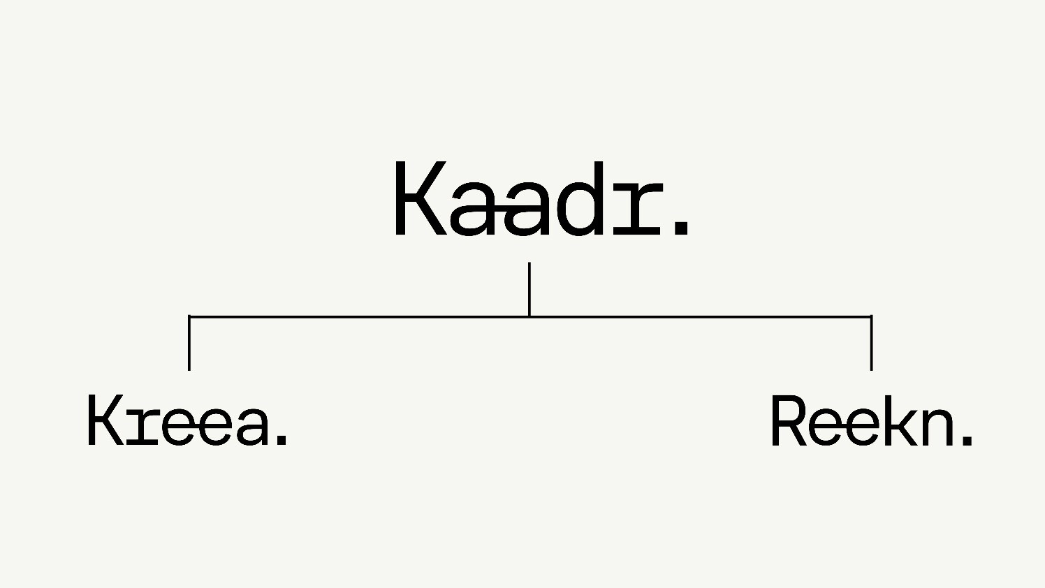 For the merger of architecture firm V2 and engineering office LMS, we developed a full rebranding that brings both disciplines together under one strong, clear identity: Kaadr. The name “Kaadr.” sounds Dutch local, familiar, and grounded and reflects the idea of a shared framework where architecture and engineering come together. It’s a name that stands for structure, vision, and collaboration. Under Kaadr., the two original companies continue as Kreaa. (architecture) and Reekn. (engineering). This naming system allows each discipline to keep its own focus, while still being clearly connected to the parent brand. To make the system future-proof, each new company that joins can simply add an extra “a” to its name. Keeping everything visually and conceptually linked. This project was not just about a new look, but about building a flexible and thoughtful brand system that can grow with the company, while staying true to its roots and values